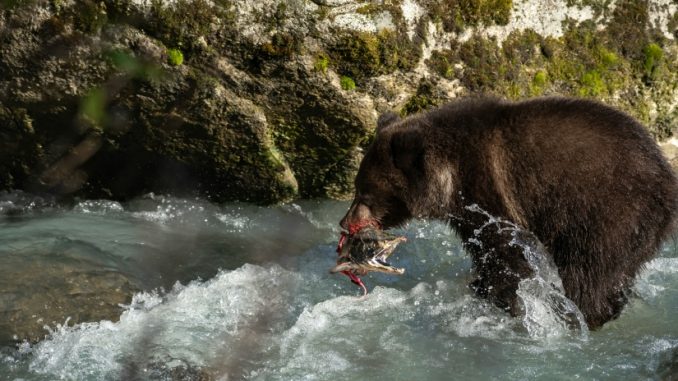 Cerca de 2.000 ursos do parque começam a engordar no final do Verão e início do Outono boreal, graças a uma dieta de até 45 quilos de salmão por dia em preparação para cinco longos meses de hibernação.