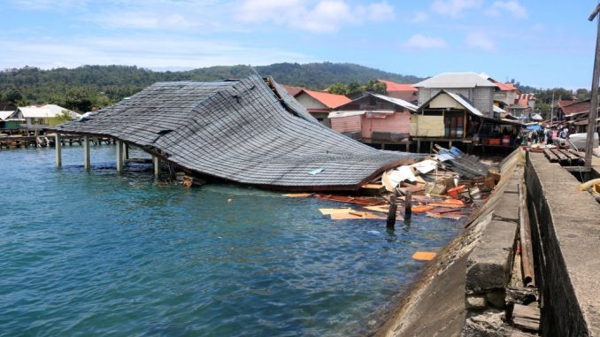 As imagens captadas em Ambon, uma cidade com cerca de 400.000 habitantes, mostram partes de muros caídos, entulho e rachaduras em prédios.