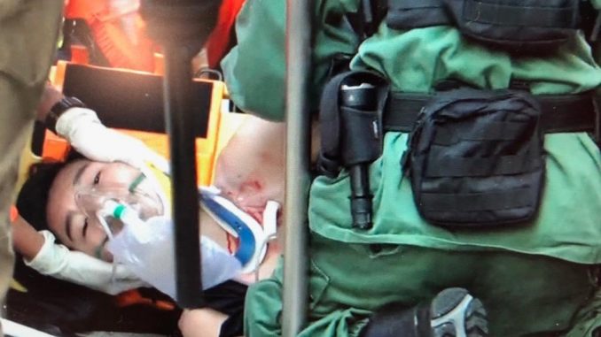 O incidente ocorreu em Tsuen Wan, com o autor do disparo a visar o peito do estudante a menos de meio metro de distância. O manifestante foi transportado para o hospital para ser ser alvo de cirurgia, num dia em que se registaram dezenas de feridos e mais de meia centena de detenções. Um pouco por toda a cidade foi possível observar pequenos incêndios e um cenário de destruição do espaço público, sobretudo contra alguns edifícios associados ao regime chinês.