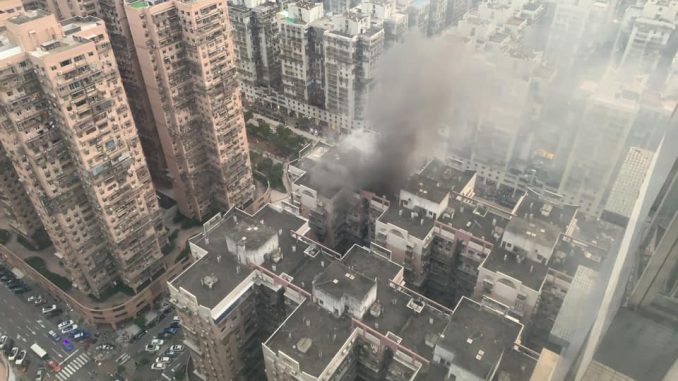 O incêndio, que se propagou a outro dos blocos do edifício Jardim Kong Fok Cheong, calcinou por inteiro o apartamento do sexto andar do bloco 4 no qual as chamas irromperam. Os “soldados da paz” depararam-se com dificuldades invulgares, depois de não terem encontrado água em várias das bocas de incêndio situadas junto ao edifício. O Corpo de Bombeiros, que está a investigar as causas da deflagração, recorreu pela primeira vez a um drone nos esforços de combate às chamas. Várias testemunhas ouvidas pela Ou Mun Tin Toi dizem ter escutado uma explosão antes das chamas terem irrompido.