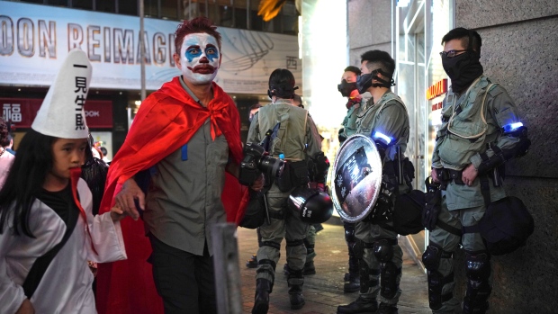 Para prevenir possíveis incidentes durante as festividades do Halloween, a polícia estabeleceu na quinta-feira perímetros de segurança em várias áreas do distrito central de Hong Kong e em outras partes da cidade.