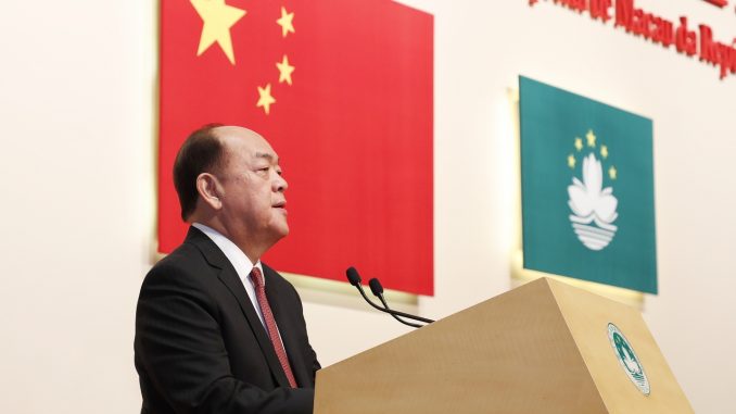 “Eu e o novo Governo da RAEM [Região Administrativa Especial de Macau] iremos implementar seriamente as orientações e as exigências transmitidas pelo Presidente Xi e empenhar esforços na implementação bem-sucedida, estável e duradoura do princípio ‘Um País, Dois sistemas’ com caraterísticas de Macau”, afirmou, numa cerimónia de comemoração do 20.º aniversário da RAEM.